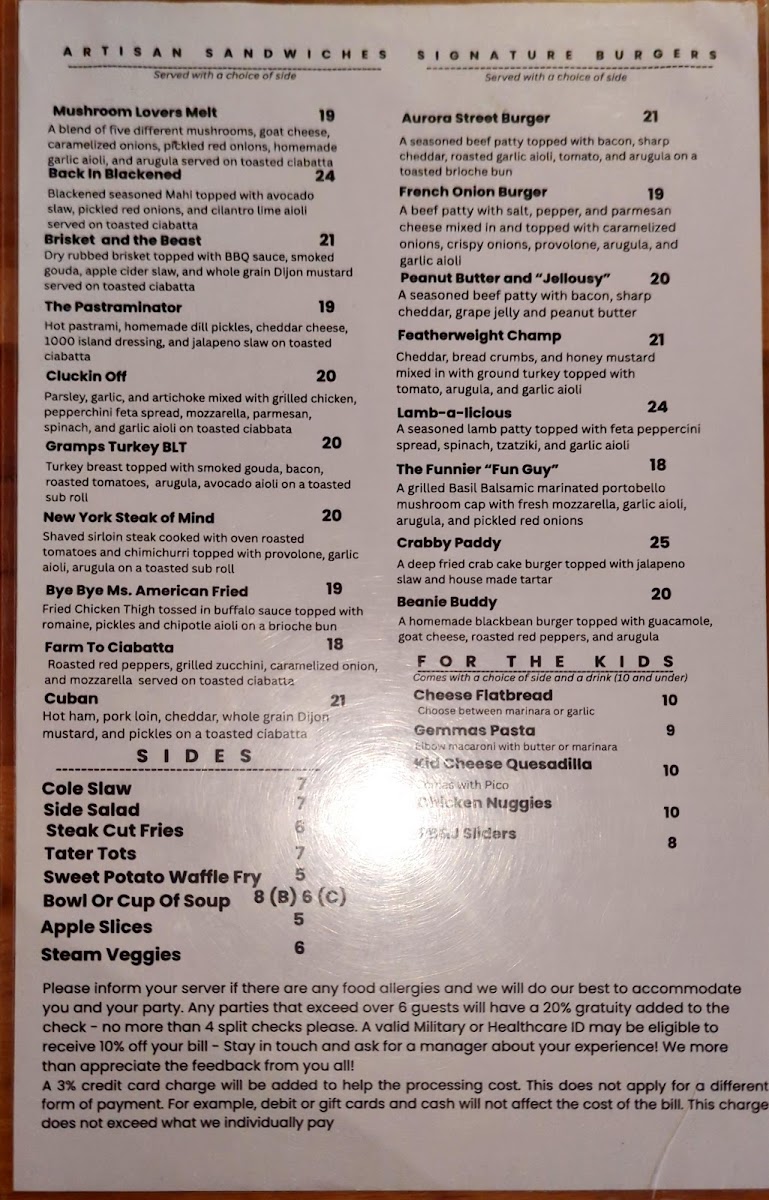The menu is well-suited for casual dining occasions, whether for a quick order or a more relaxed meal. It presents a combination of familiar gastropub fare with some inventive twists on classic items. The range accommodates both lighter bites and more substantial plates, appealing to a diverse set of dining preferences throughout the day.